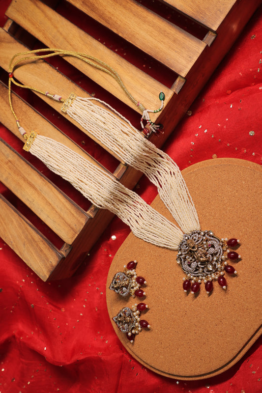 Aaradhya - Polki and Diamond Ganesh Pendant with Pearl String and Earrrings