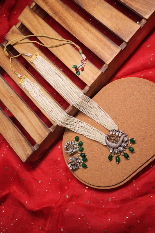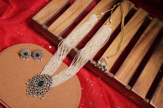 Aaradhya - Pearl Stringing with Diamond and Polki Pendant and Earrings