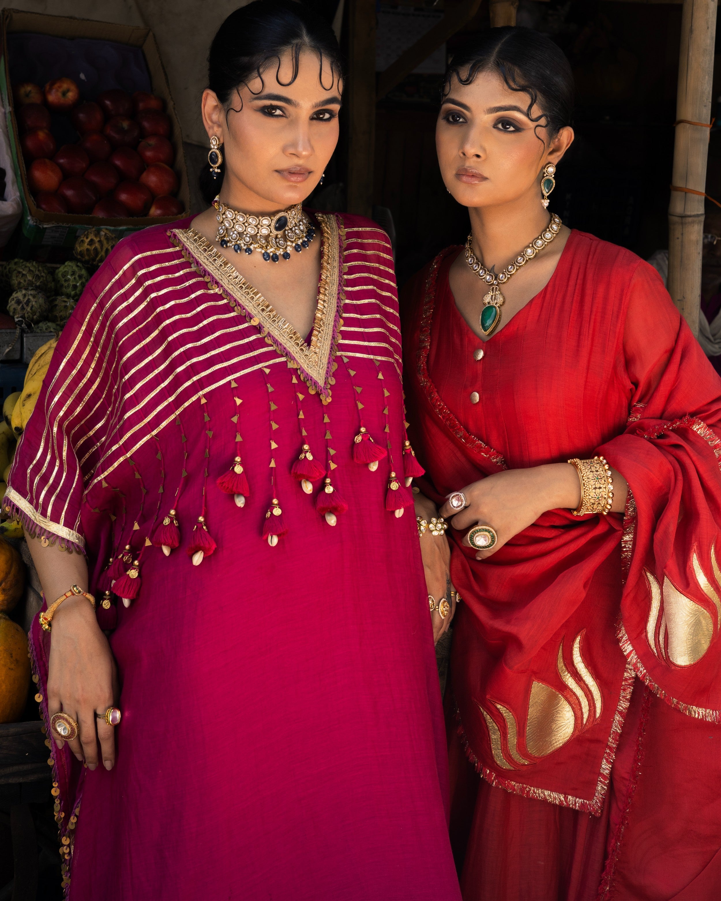 Aaradhya - Polki and Diamond Pendant with Red Quartz Beads and Earrings