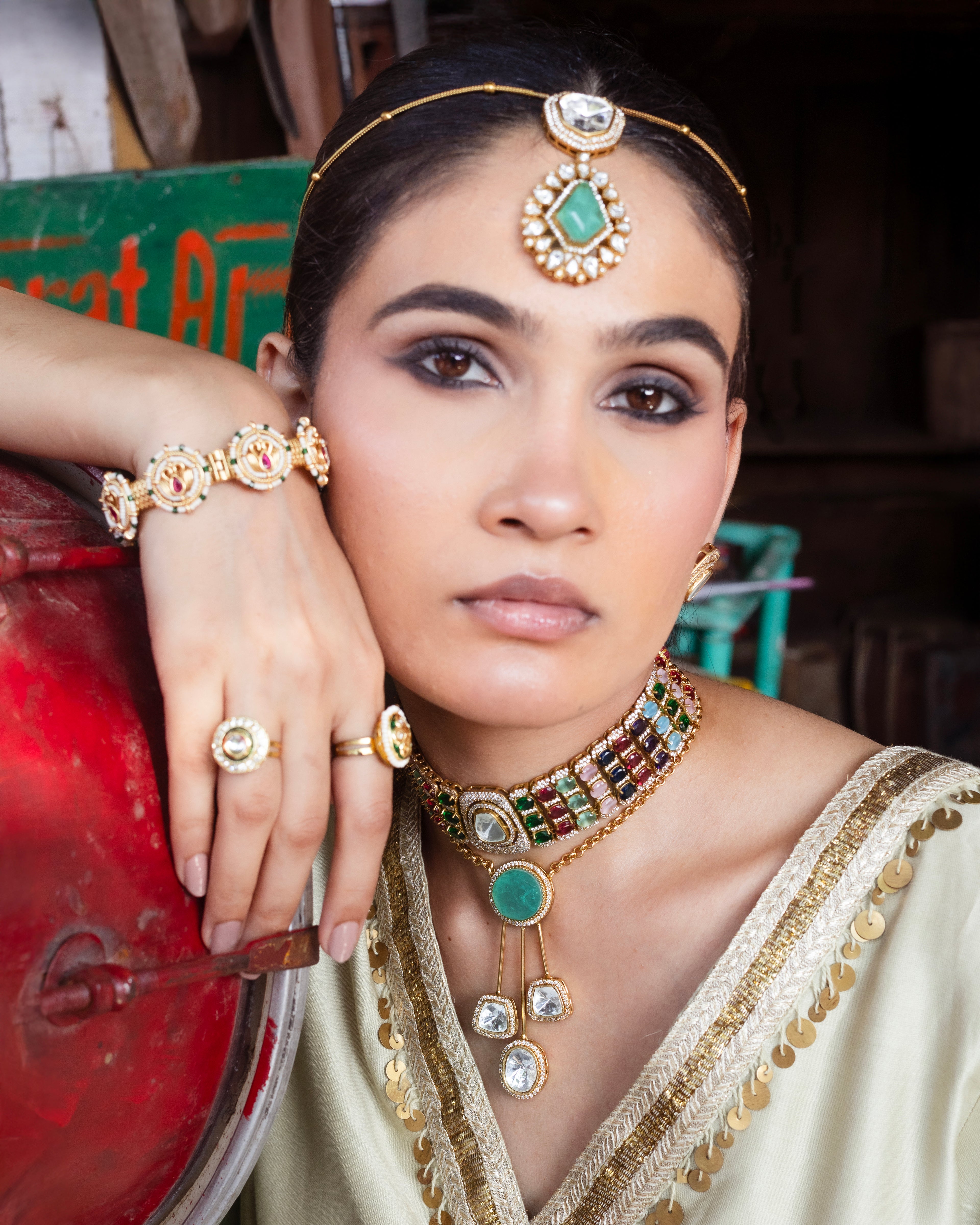 Aaradhya - Navratan Polki and Pearl Choker with Earrings