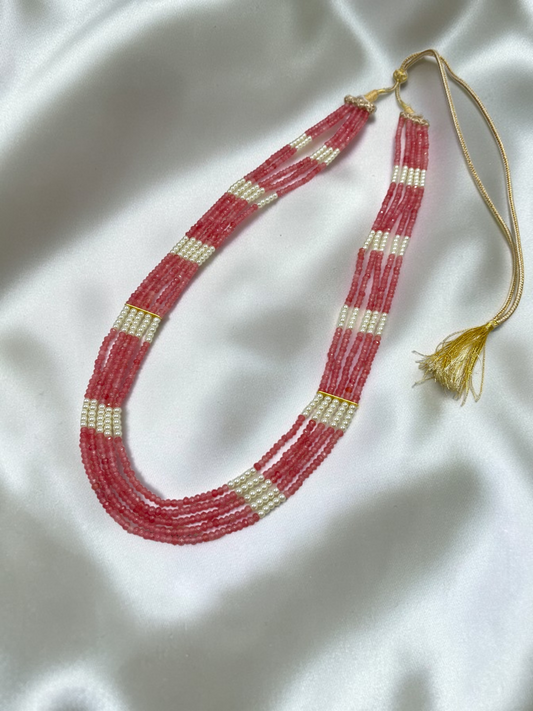 5 LINE PINK BEADS AND WHITE SHELL PERAL NECKLACE