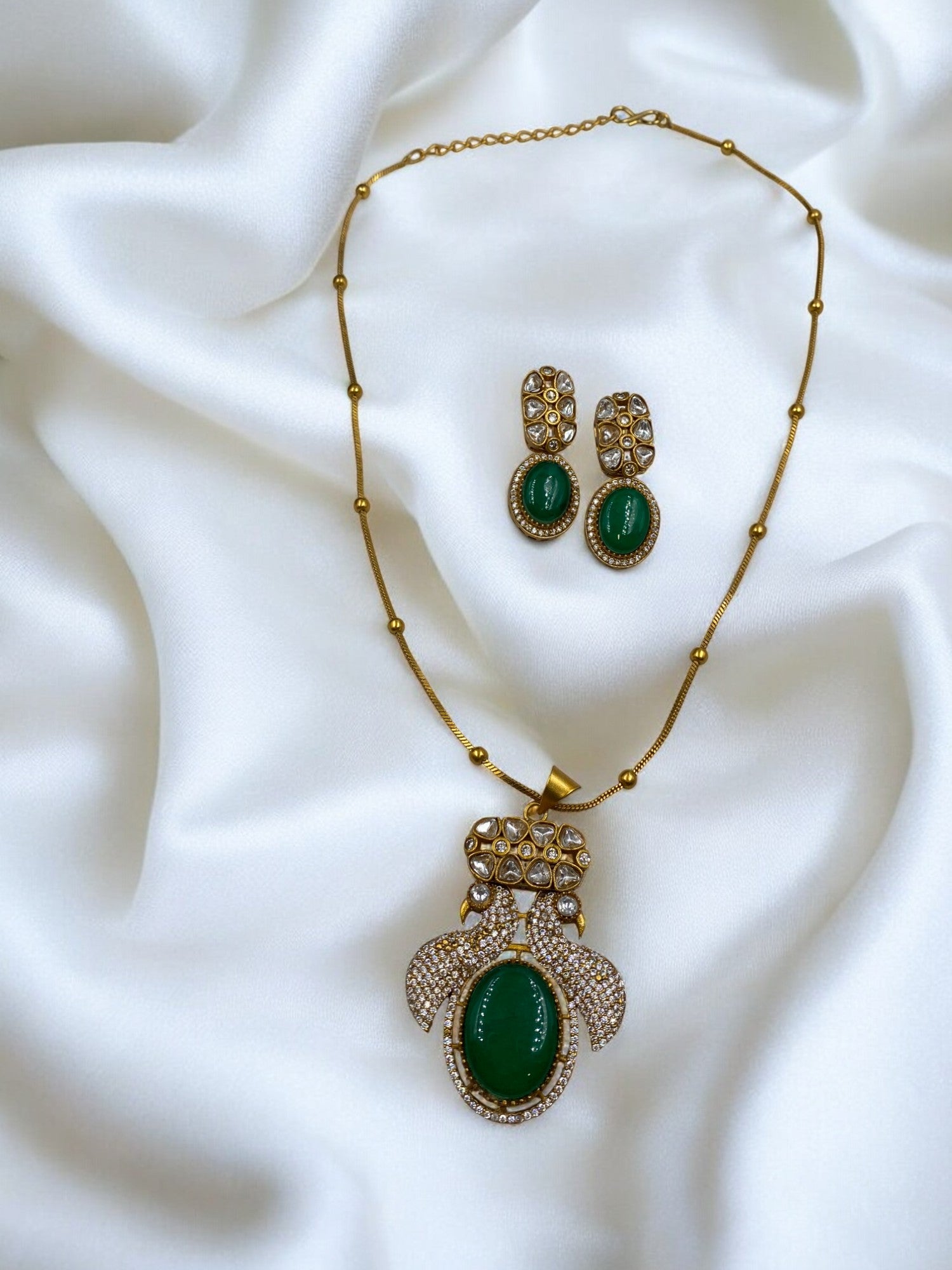 Aabharan - Polki Pendant Chain Set With Earrings