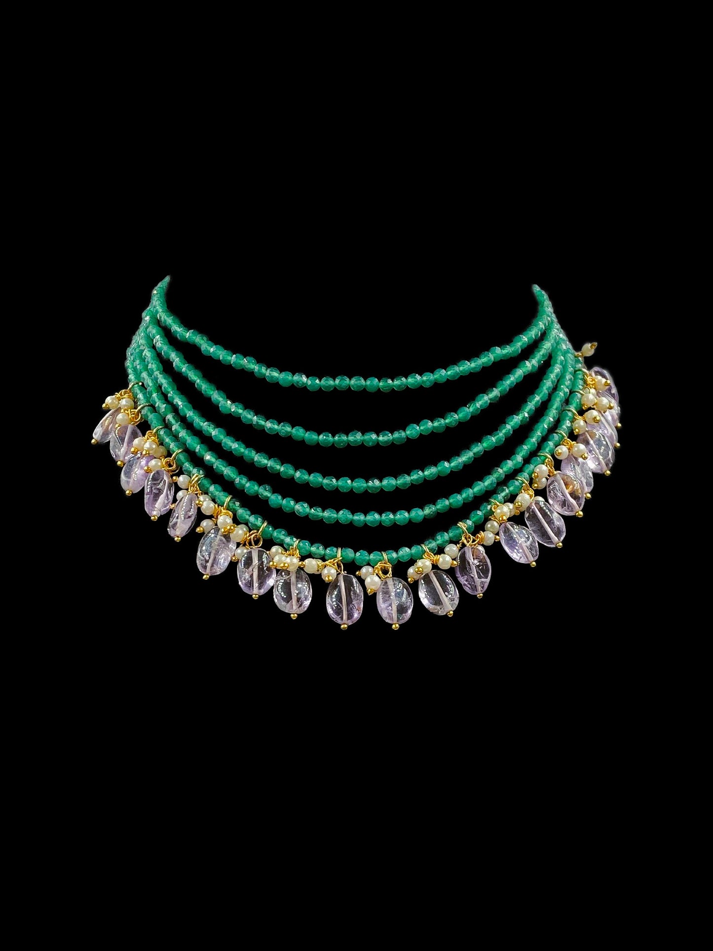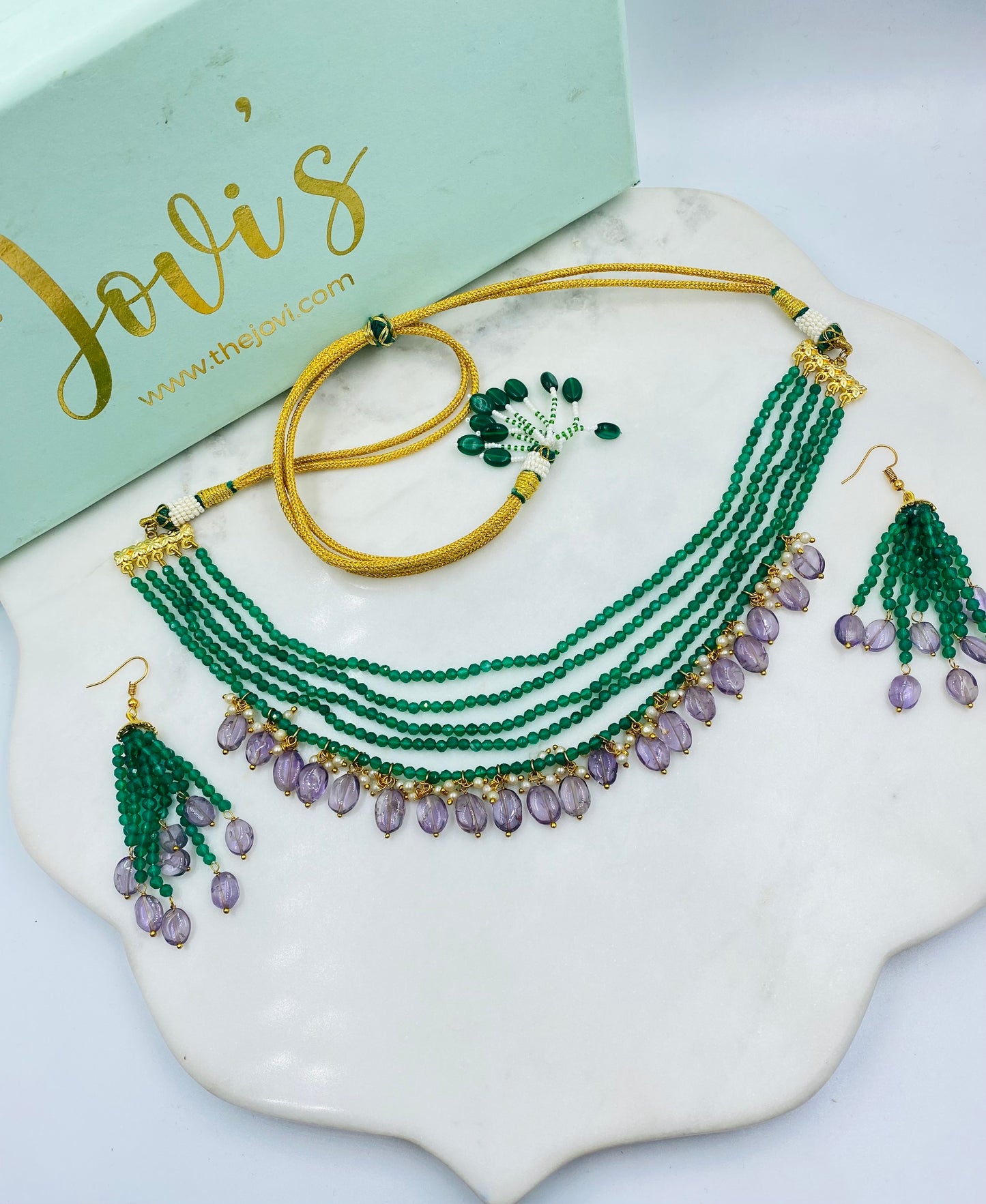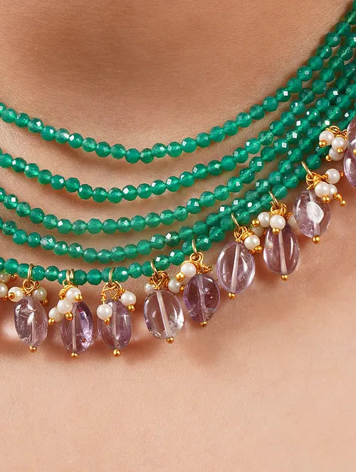 Stones: Semiprecious Green Jade & Amethyst Beads