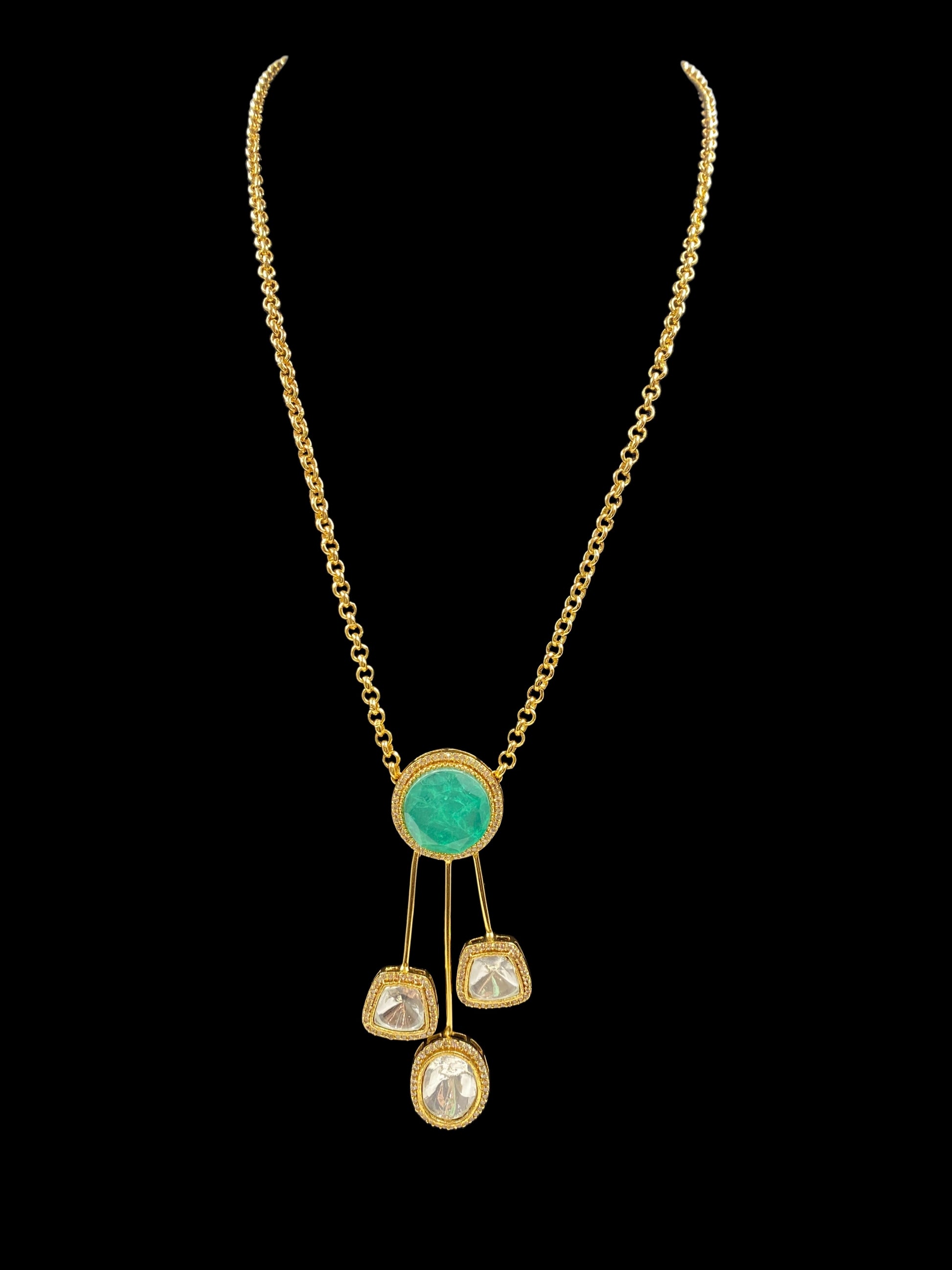 Swarna - Mint Green Stone Chain Pendant Set with Earrings